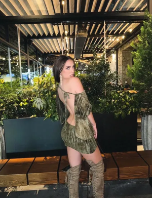 This women's mini dress solves that. The velvet devoré catches light and the backless halter creates instant attention so you stand out at bars, dates, and parties with a confident, sexy look.